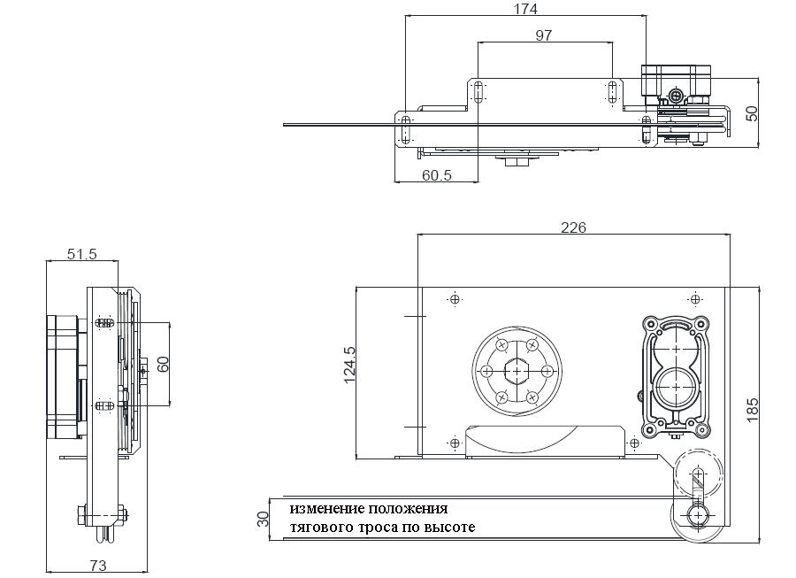 Использование регулировочного шкива позволяет изменять высоту тягового троса в пределах 30 мм.
